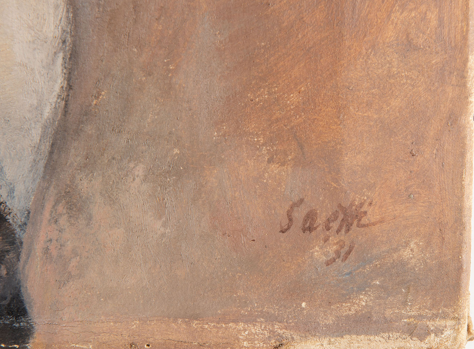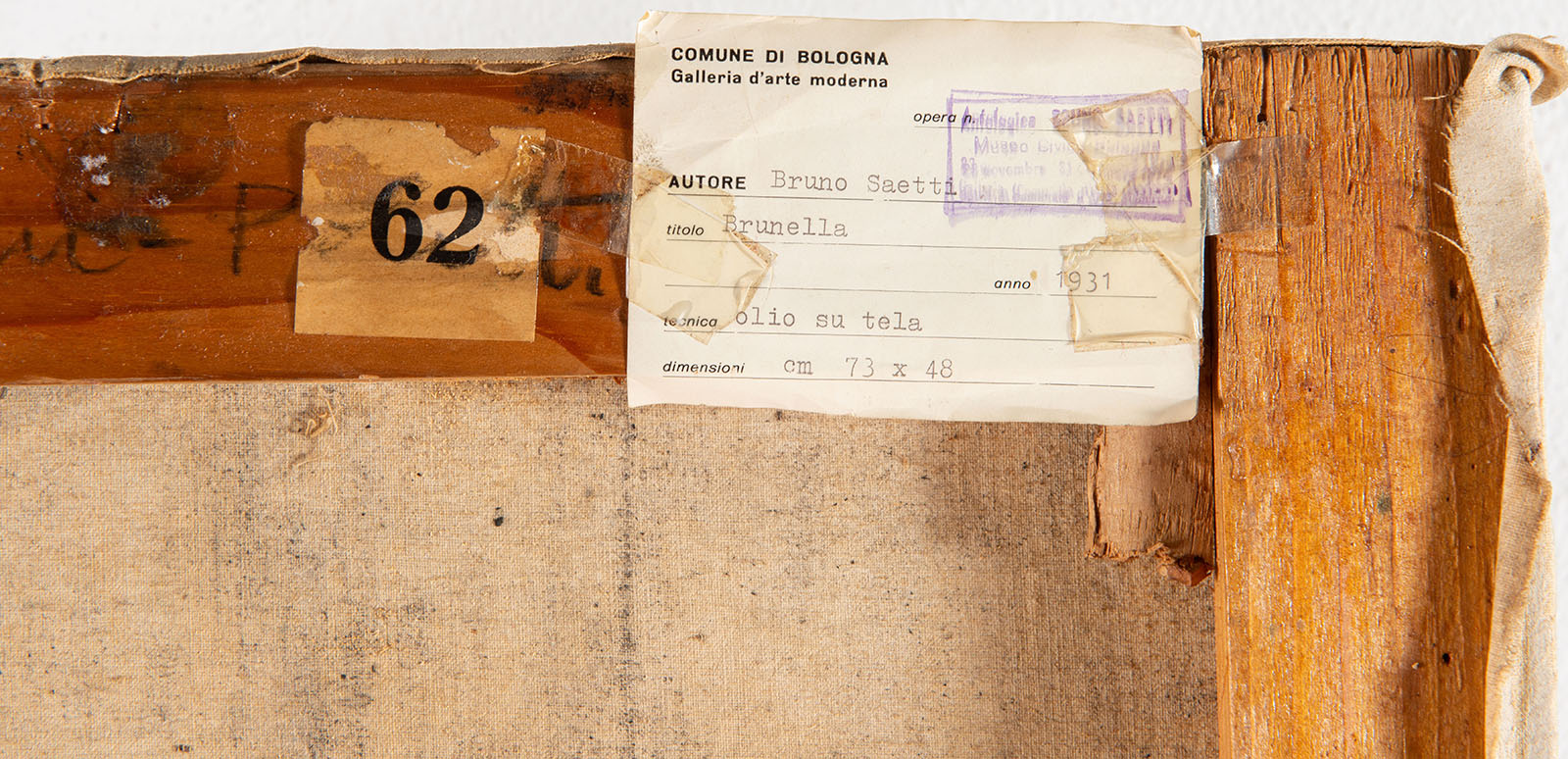 Descrizione: Olio su tela, firmato in basso a destra Saetti, al retro iscrizione ‘N.883/Brunella/olio/dim 73×48/Saetti’, H cm 73×48.