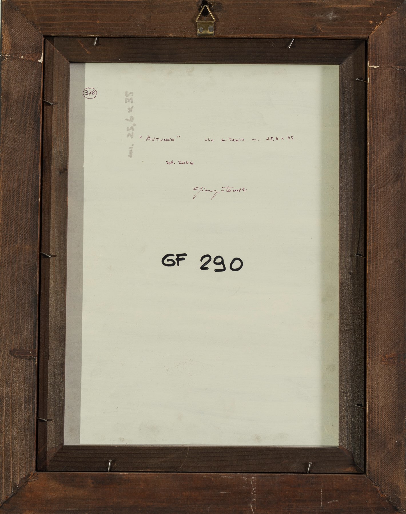 Descrizione: Olio su tavola, reca al retro titolo, anno, firma, tecnica e dimensioni. Al retro reca numero di inventario della Galleria Forni, H cm 35×25,5 – con cornice H cm 44×35.