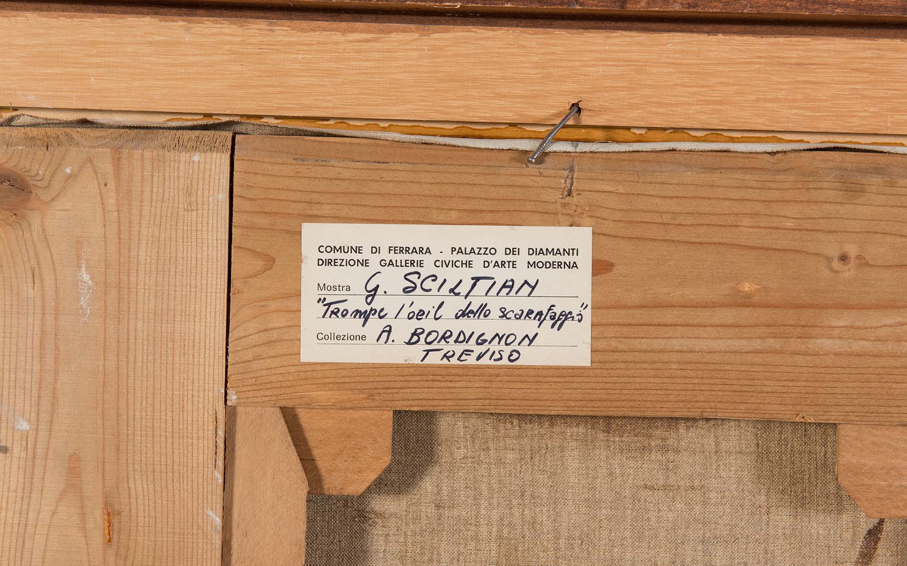 Esposizioni: ‘L’illusione di Sciltian – Inganni pittorici alla prova della modernità’ – Mostra a cura di Stefano Sbarbaro, 3 Aprile – 6 Settembre 2015, Villa Bardini a Firenze; Mostra ‘Gregorio Sciltian’ – Ferrara, Palazzo dei Diamanti, 2 Febbraio – 31 Marzo 1986; Museo Pusckin di Mosca nel 1983. Provenienza: Collezione Tamassia – Modena; Collezione Bordignon, S. Zenone degli Ezzelini – Treviso.