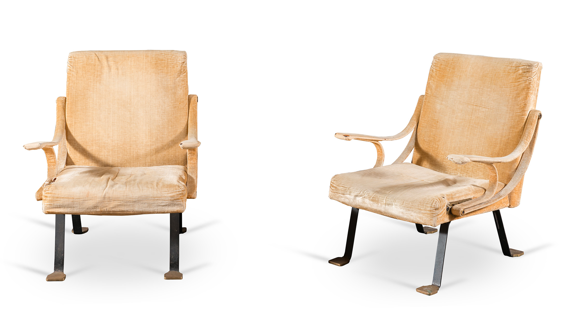 Descrizione: Struttura metallica in acciaio smaltato, finiture in ottone, imbottitura in gomma, rivestimento in velluto, H cm 85x75x84 (difetti) Bibliografia: Catalogo Originale Azucena, p.5; G. Gramigna, Repertorio 1950- 80, Mondadori, 1985; G. Gramigna, P. Biondi, Il design italiano dell’arredamento domestico, Allemandi, 1999; A. Branzi, M. De Lucchi, Il design italiano degli anni ’50, RDE, 1985; AA. VV., Dino Gavina: collezioni emblematiche del moderno dal 1950 al 1992, Jaca Bo, 1992
