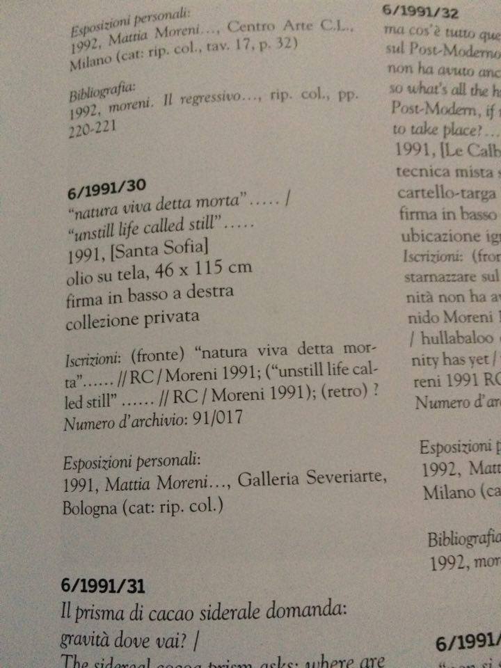 Esposizioni: 1991, Esposizione personale di Mattia Moreni – Galleria Severiarte, Bologna.